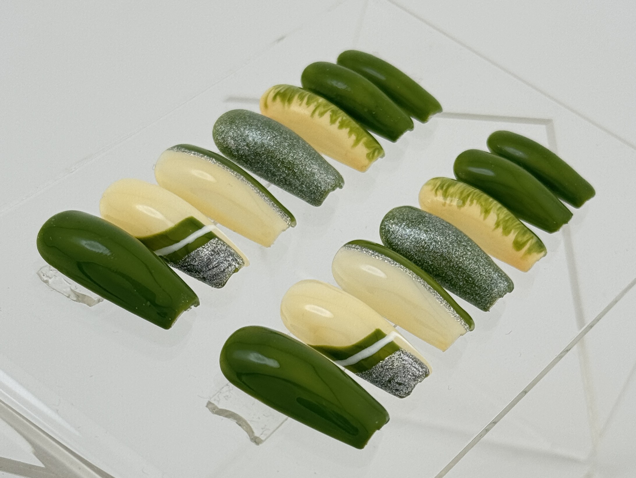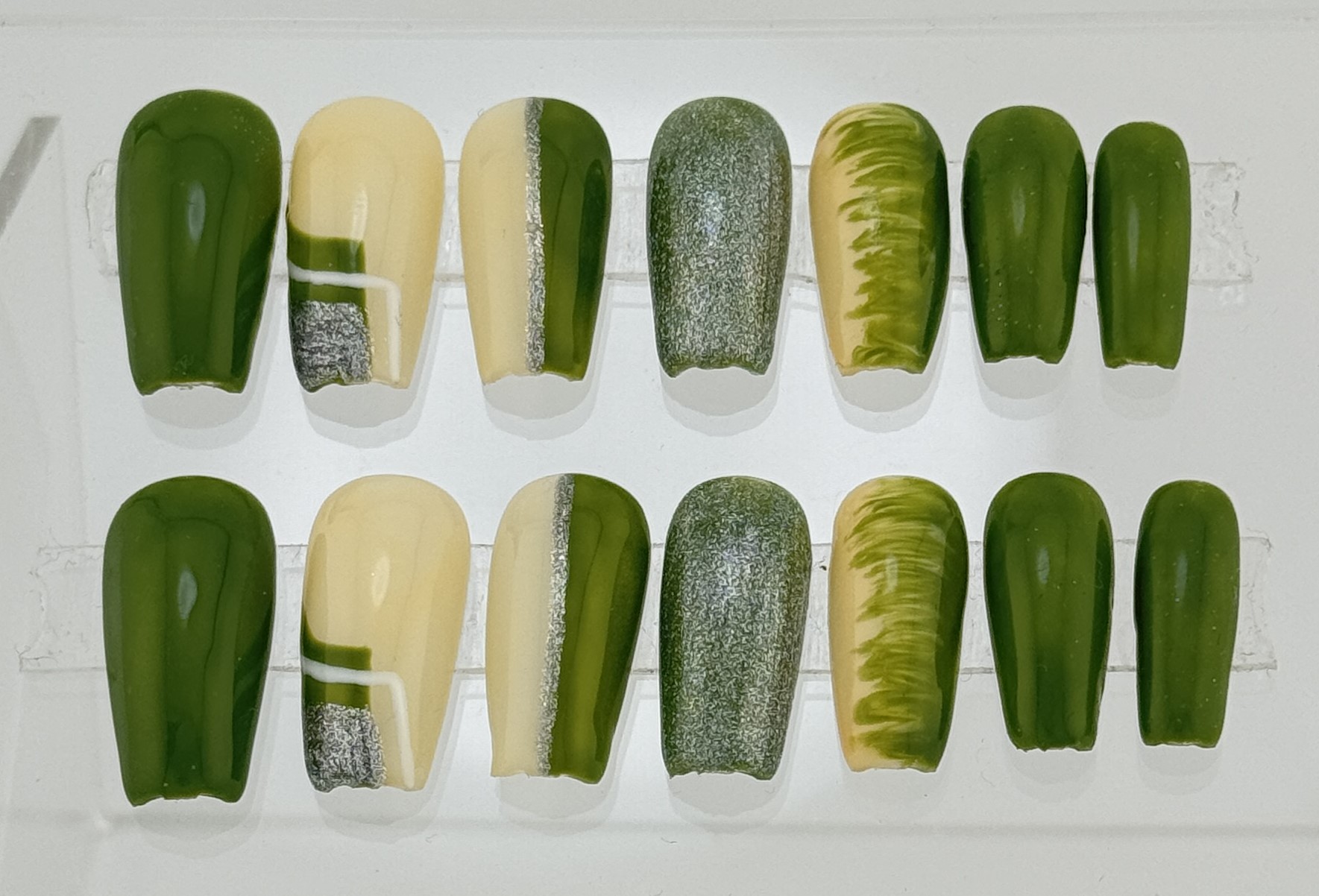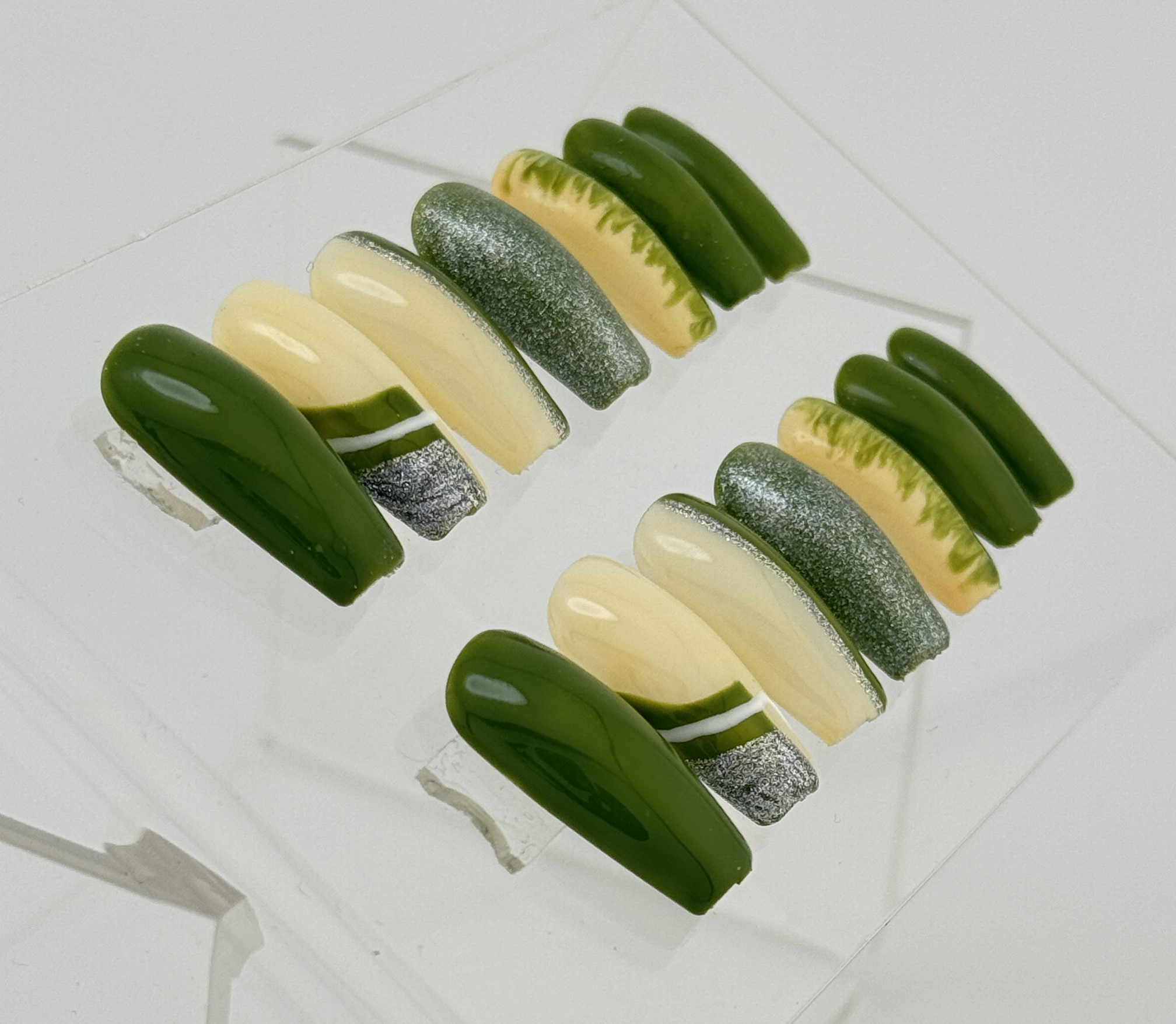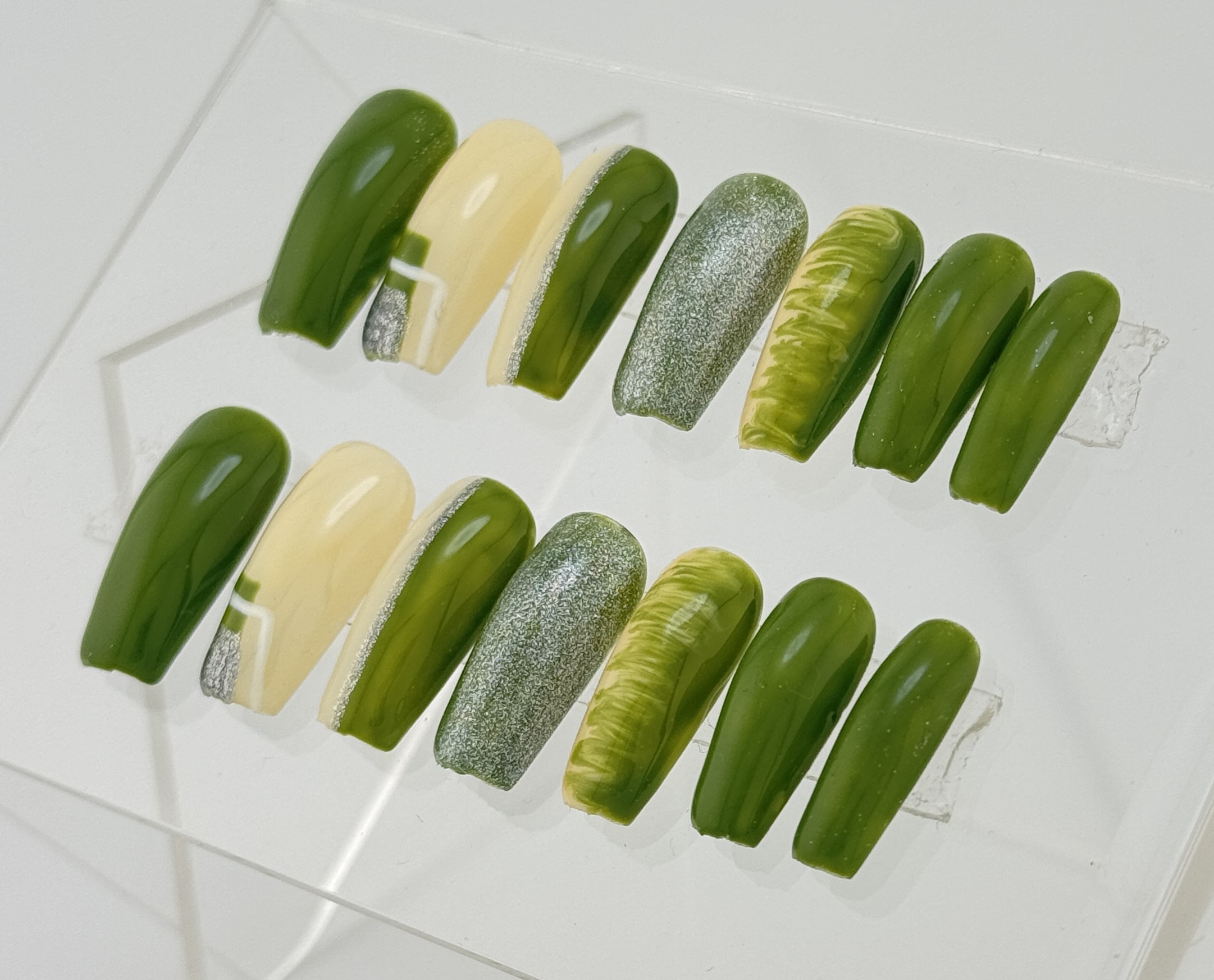 A subtle yet classy nail set with soft colors and refined designs. Ideal for everyday elegance and effortless beauty.